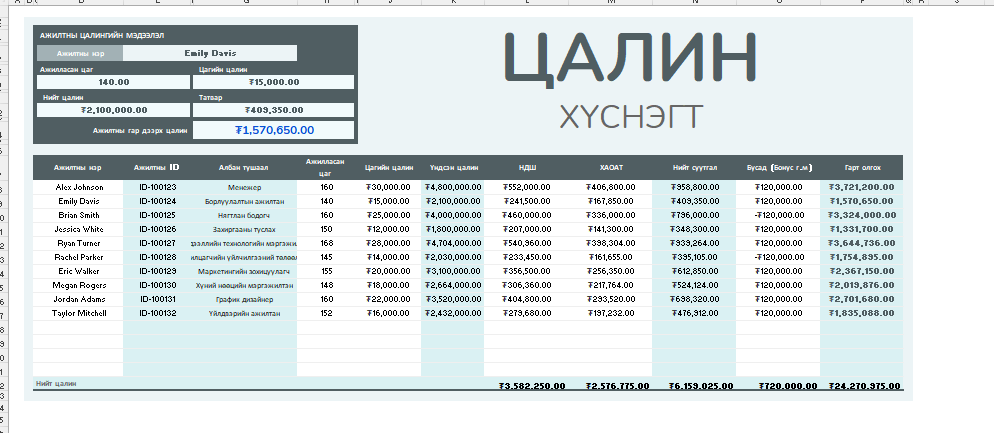 Ажилтны цалингийн хүснэгт₮ 7,500 - Ажилтны цалингийн хүснэгт тоо ширхэг + Захиалах Category: Санхүү Related products Нэхэмжлэх бүртгэл ₮ 6,500 Захиалах Данс бүртгэл ₮ 5,500 Захиалах Бизнесийн нягтлан бодох бүртгэл ₮ 12,500 Захиалах Зардал төлөвлөгч ₮ 6,500 Захиалах
