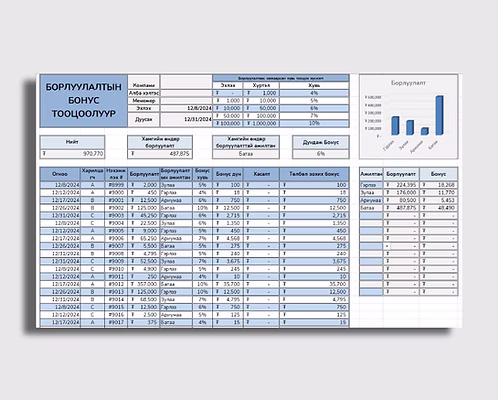 Борлуулалтын бонус тооцоолуур – Борлуулалтаас хамаарсан₮ 8,900 - Борлуулалтын бонус тооцоолуур - Борлуулалтаас хамаарсан тоо ширхэг + Захиалах Categories: Борлуулалт, Тооцоолуур, Хүний нөөц Related products Борлуулалтын KPI тооцоолуур ₮ 15,000 Захиалах Тооцоолуур багц ₮ 55,000 Захиалах Бонус тооцоолуур ₮ 6,500 Захиалах Онлайн худалдааны бүртгэл, хянах самбар ₮ 11,000 Захиалах