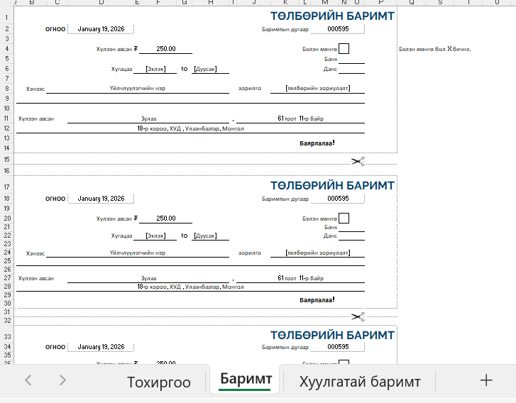 Төлбөрийн баримт₮ 6,000 - Төлбөрийн баримт тоо ширхэг + Захиалах Categories: Баримт, Санхүү Related products Зээлийн тооцоолуур ₮ 6,000 Захиалах Жижиг бизнесийн төсөв ₮ 6,500 Захиалах Данс бүртгэл ₮ 5,500 Захиалах Балансын тайлан – Харьцаатай ₮ 5,500 Захиалах