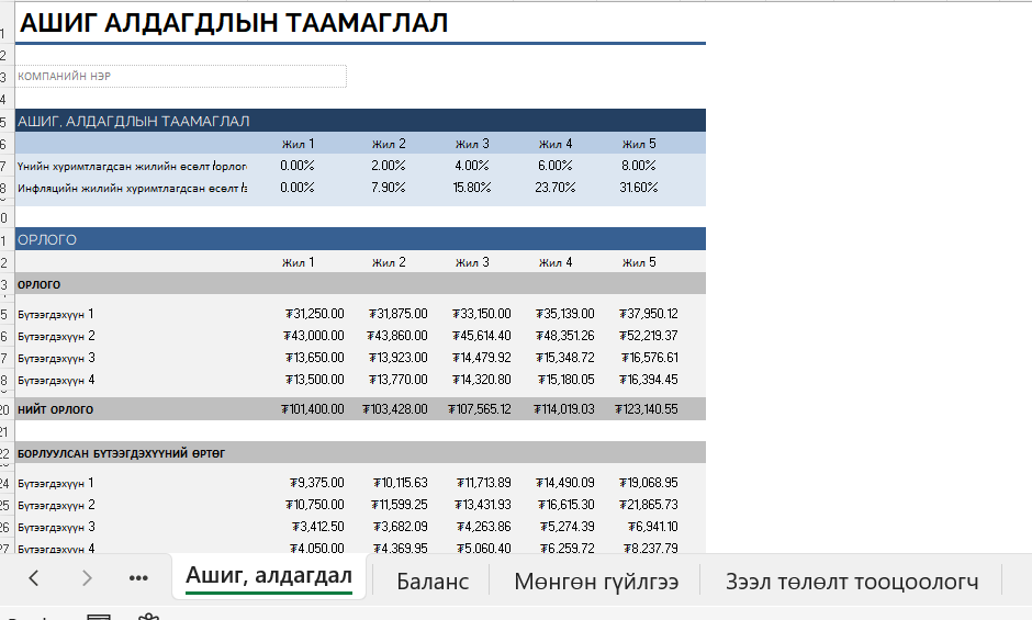 5 жилийн санхүүгийн таамаглал₮ 15,500 - 5 жилийн санхүүгийн таамаглал тоо ширхэг + Захиалах Category: Санхүү Related products Бизнесийн үнэлгээний загвар ₮ 10,900 Захиалах Жилийн санхүүгийн үзүүлэлтийн тайлан ₮ 9,500 Захиалах Мөнгөн гүйлгээний таамаглал ₮ 6,000 Захиалах Ашиг алдагдал тооцоолуур ₮ 10,500 Захиалах
