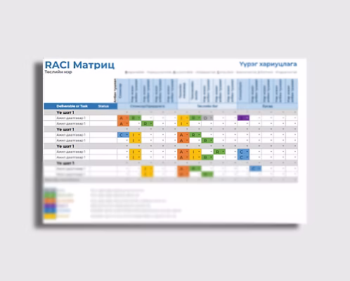 RACI матриц₮ 7,500 - RACI матриц тоо ширхэг + Захиалах Categories: Анализ, шинжилгээ, Матриц, Төсөл Related products Шинжилгээ багц ₮ 55,000 Захиалах ABC-XYZ шинжилгээ ₮ 7,000 Захиалах Борлуулалтын шинжилгээ – Багийн үзүүлэлт – Ногоон ₮ 9,900 Захиалах Хүний нөөцийн эргэлт | HR Turnover ₮ 6,500 Захиалах
